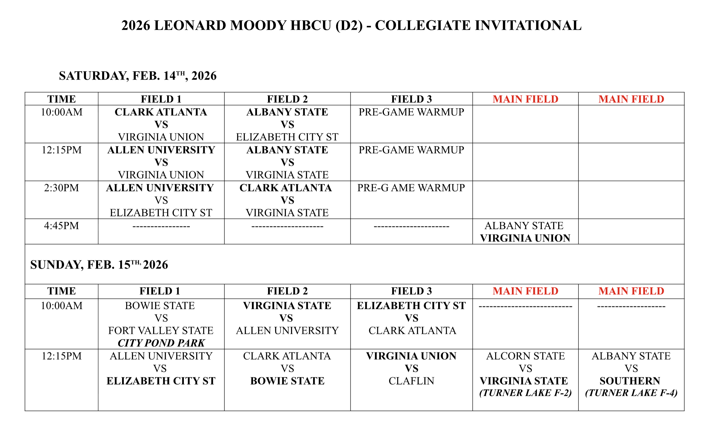 Tournament Schedule watch live on Game Changer!Scroll through to find the game of your choice! THE “LEONARD MOODY”HBCU COLLEGIATE INVITATIONAL The Address 6185 Turner Lake Rd NW, Covington, GA 30014 About the Facilities